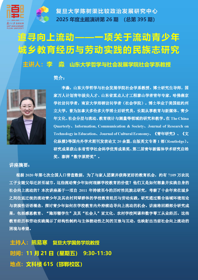 复旦大学国际关系与公共事务学院2025年度教师招聘启事